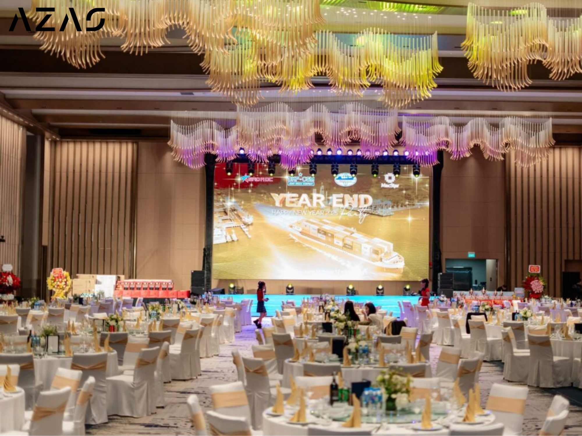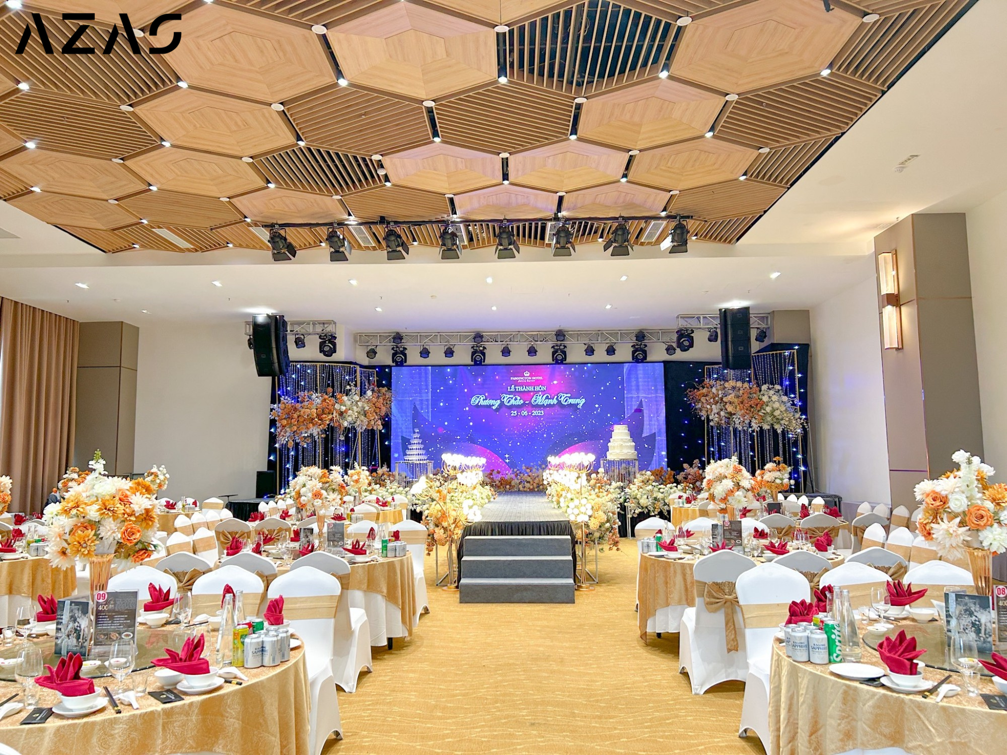 AZAS tổ chức tiệc cưới, sinh nhật, tất niên, gala công ty trọn gói: concept, sân khấu, âm thanh–ánh sáng–LED, MC, chụp quay & KPI rõ ràng.